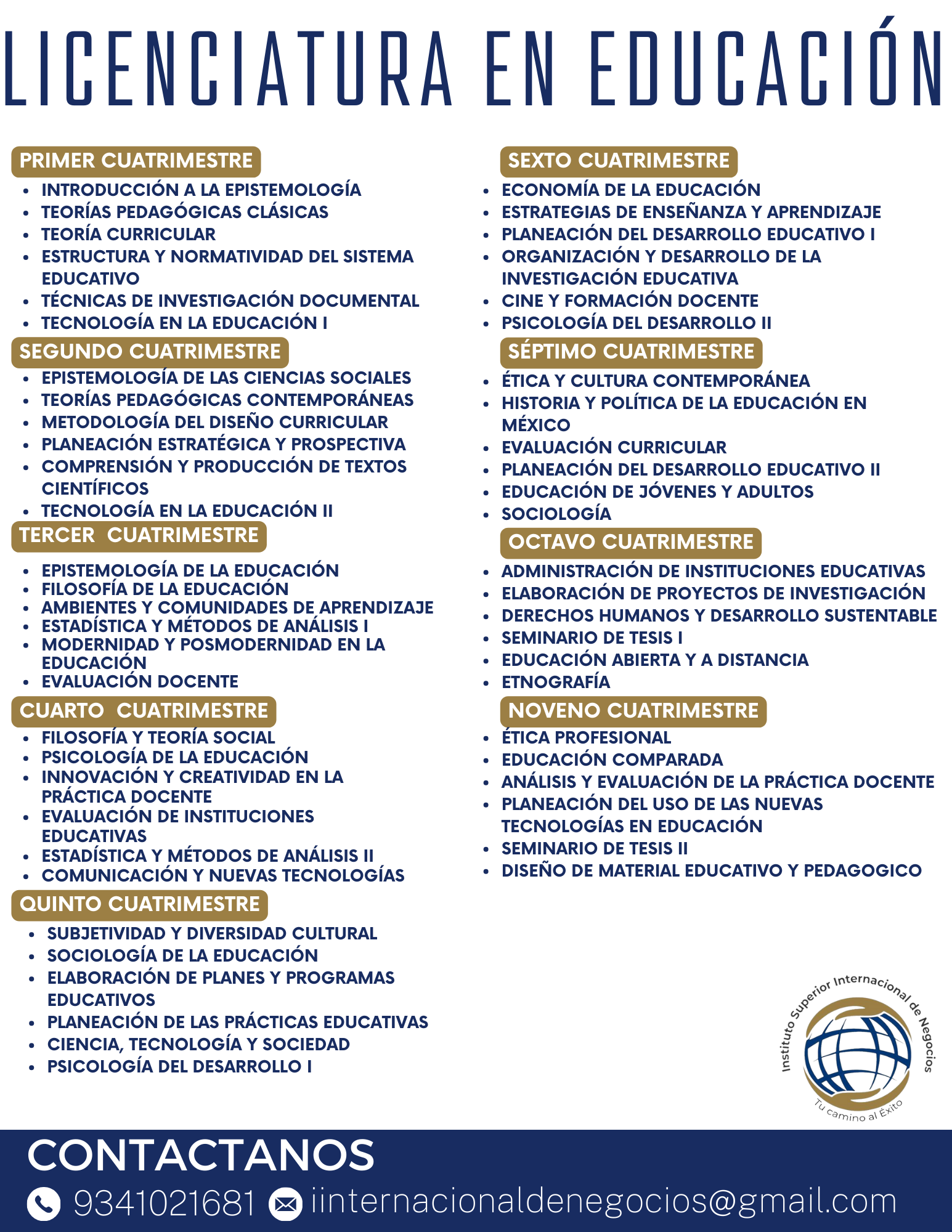 Formar profesionales en Educación con una visión integral de los procesos educativos, en los contextos global y local; capaces de investigar, evaluar, diseñar, gestionar e intervenir en proyectos educativos de calidad en lo individual y social, comprometidos con las necesidades sociales y el desarrollo sustentable del país; creativos e innovadores, con habilidades para desarrollar una reflexión crítica sobre los problemas educativos del entorno.